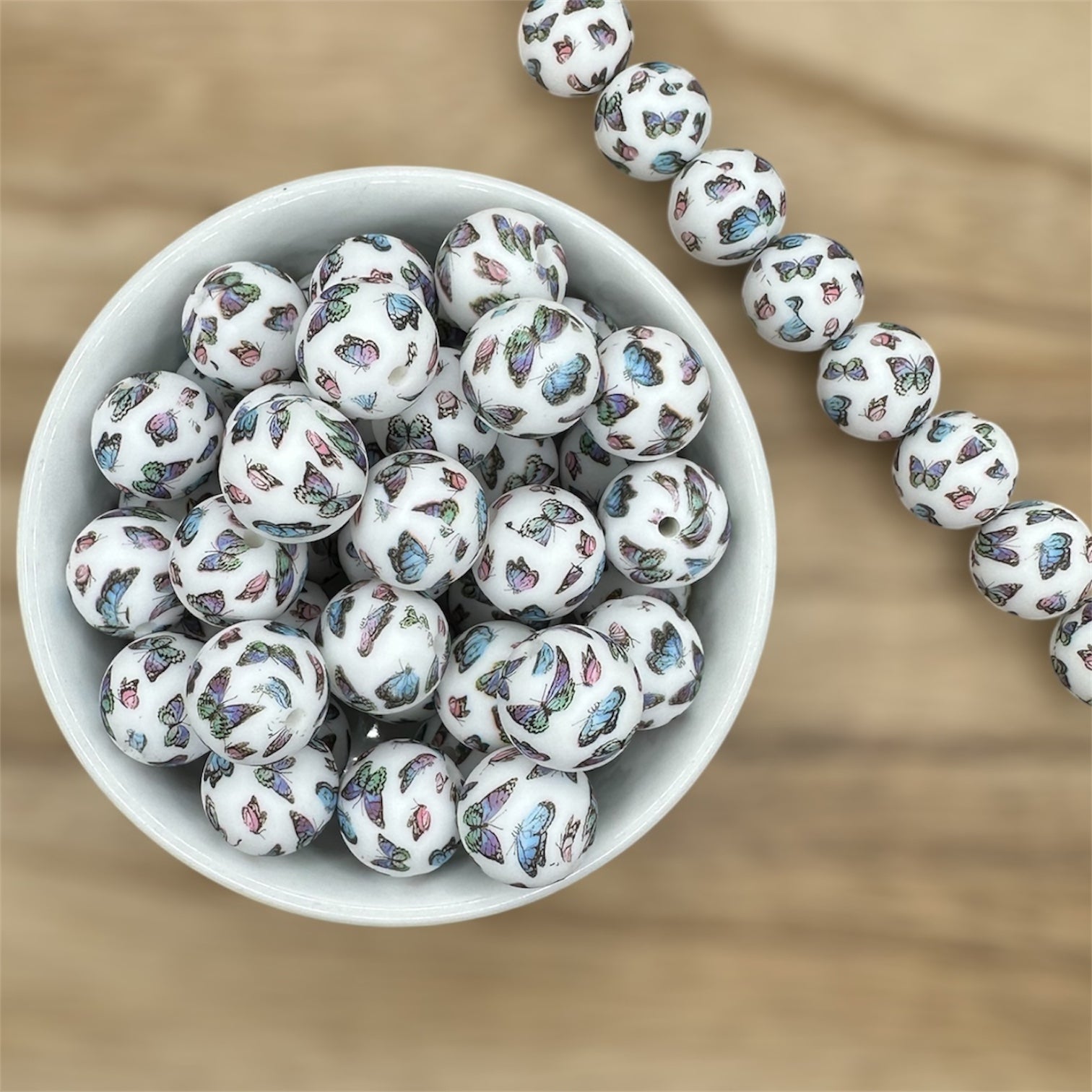 Butterfly | 15mm Round Printed Silicone Bead