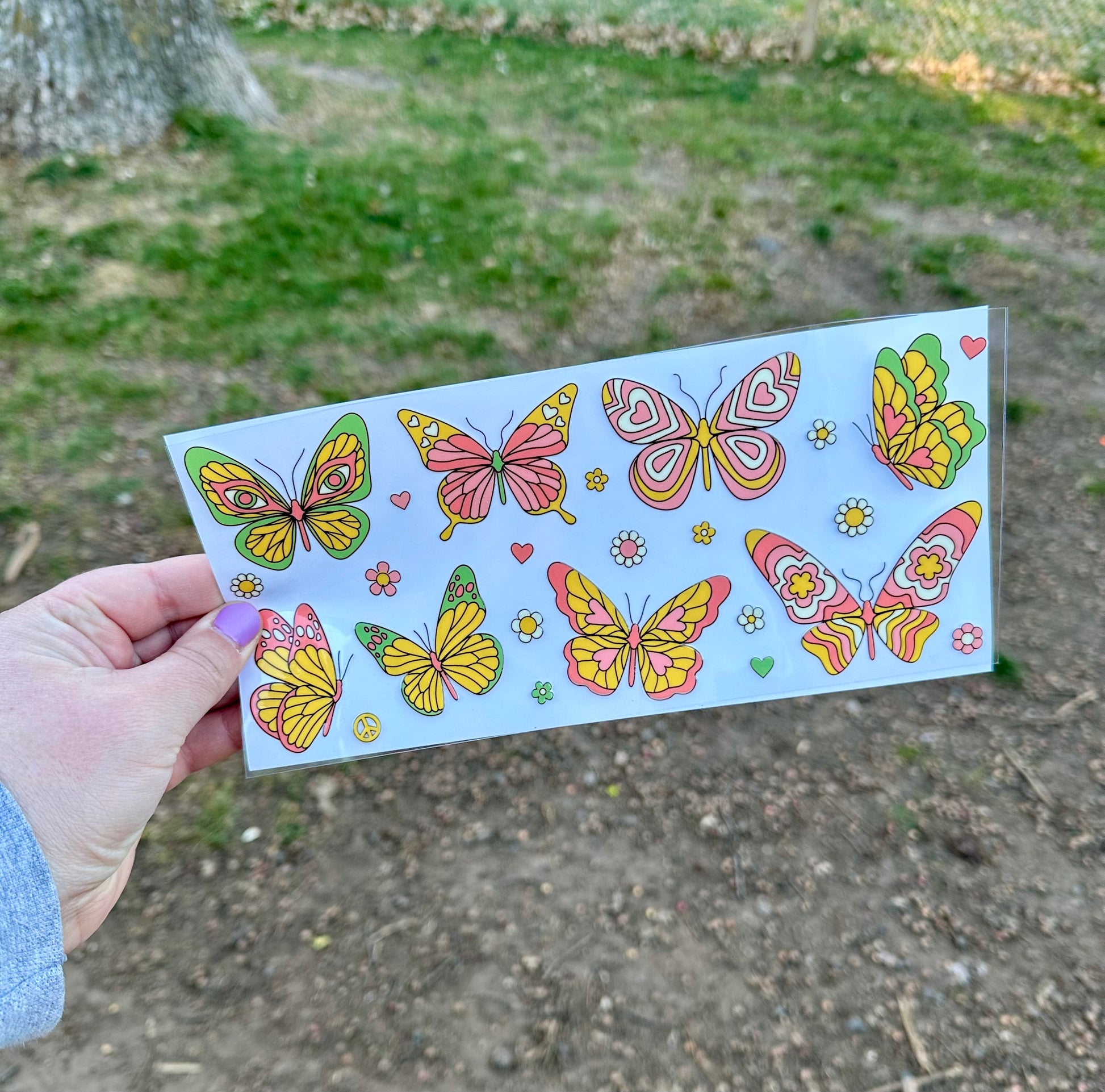 Moth Butterfly Multi Color UV DTF Can Cup Wrap - Ready to Apply